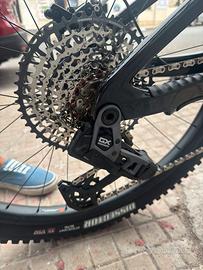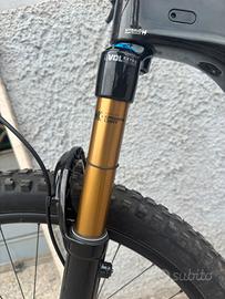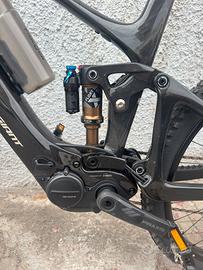 300km percorsi Taglia L Questa e-mountain bike full-suspension rappresenta il perfetto equilibrio fra leggerezza, potenza e versatilità per trail impegnativi. Il telaio in composito “Advanced-grade” è progettato per offrire una guida fluida e reattiva, con 140 mm di escursione al posteriore grazie al sistema Maestro.  Il concetto è chiaro: affrontare salite e discese tecniche senza compromessi, grazie ad un supporto elettrico performante ma in un pacchetto agile. Telaio, sospensioni e piattaforma •Telaio: “Advanced-grade composite frame, Advanced-grade rear triangle, Advanced forged composite upper rocker” con sistema Maestro da 140 mm.  •Forcella anteriore: Fox 36 Factory E-Tuned da 150 mm, offset 44 mm, damper Grip2.  •Ammortizzatore: Fox Float X Factory, EVOL, formato 185×52,5 mm Trunnion.  Questa dotazione assicura che la bici sia pronta a divorare single-track, radici, roccette: in discesa è affidabile, in salita non impone limiti. Cambio: SRAM GX Eagle AXS wireless 1×12, pacco pignoni 10-52T.  •Freni: SRAM Code R a 4 pistoni, dischi 220 mm anteriore / 200 mm posteriore.  •Ruote: Carbon E-TRX / TRX Hookless Tubeless ready, anteriore 29″, posteriore 27,5″ (“mullet”) – contribuisce a mix di agilità e stabilità.  •Pneumatici: ad esempio Maxxis Minion DHF 29×2.50″ all’anteriore, Maxxis Dissector 27,5×2.4″ al posteriore.  Questa configurazione componentistica di livello premium assicura che la bici non solo salga bene, ma scenda con controllo e sicurezza, anche nei passaggi più tecnici. Motore: Giant SyncDrive Pro2 – coppia dichiarata 85 Nm con tecnologia PedalPlus 6-Sensor. Batteria: EnergyPak 400 Wh integrata nel telaio, con possibilità di extender “Plus 200” opzionale.  È ideale per chi vuole divertirsi sulle salite e scendere con grinta, senza sentire troppi compromessi. Valuto permute Specialized Trek Canyon Bmc Look Willier Bianchi Colnago Cervelo Scott Orbea Factor Argon18 SWorks Dogma Pinarello