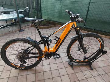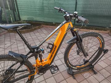 Vendo E-MTB Merida modello eONE-SIXTY motore Shimano batteria shimano 630 Wh EP8 del 10/04/2021, in carbonio biammortizzata. Ruota posteriore 27,5 e anteriore del 29, forcella da 160 e ammortizzatore 150, taglia S. Per ulteriori informazioni vedi foto specifiche allegata oppure sul sito Merida 2021. Importo pagato euro 6.000,00.
