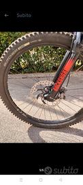 Orbea wild full taglia L con motore bosch e batteria da 625, forcella da 160 ammortizzatore fox da 150 ruote da 29 con copertoni nuovi (3 uscite) con inserto e lattice. Freni idraulici con olio nuovo, disco anteriore maggiorato da 220 Galfer, posteriore da 200 sempre galfer con pasticche viola dedicate per e-bike, . 12 velocità, sellino telescopico, pedali crank brothers stamp 2.