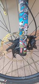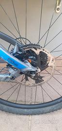 mtb taglia m . ruote da 29" tubeless con lattice. dischi freno da 205 mm. Telaio: Rockrider Stilus E-Trail, lega Motore: Bosch Performance Line 250 Watt, 65 Nm Batteria: Bosch PowerTube da 500 Wh Display: Bosch Purion Forcella: RST Vibe, 130 mm Ammortizzatore: KS Coil 388 RL, 130 mm Cambio: Microshift RD-M66M a 10 velocità: Guarnitura: FSA con corona dotata di 32 denti Cassetta: Microshift 11-42t Attacco manubrio: Alluminio da 55 mm e +7° di inclinazione Manubrio: Signum in alluminio, lunghezza 720 mm, diametro 35 mm, rise 12 mm, upsweep 4°, backsweep 12° Reggisella telescopico: TranzX YSP18P con diametro 30.9 mm ed escursioni di 80 mm (M), 100 mm (L), 130mm (XL). Sella: Royal Vivo La bici per il resto ha qualche graffio dovuto all'utilizzo in sentieri nei boschi e montagne.