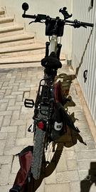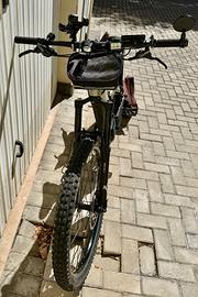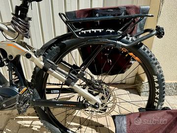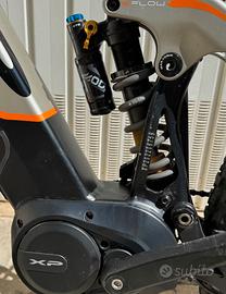 Mountan bike elettrica XP Flow, seminuova, superaccessoriata, acquistata il 12/06/2025 con garanzia sino al 11/06/2027, percorsi circa 1200 Km. Batteria removibile da 840 Wh con chiusura di sicurezza, che consente ampia autonomia (percorsi su strada 70 Km con un dislivello di 1400 mt.) motore con coppia massima di 100 Nm per superare pendenze estreme. Forcella Formula Selva con escursione di 170 mm. Ammortizzatore centrale Formula Mod. bloccabile a doppio effetto (aria/molla). Ruote assetto Mullet (29'' anteriore 27.5''posteriore) Copertoni MAXXIS Minion DHF 29x2.6'' anteriore e DHR 27.5x2.6'' posteriori, entrambi con guaina interna antiforatura, reggisella telescopico. Cambio SRAM Nx a 11 rapporti, freni anteriore e posteriore a disco idraulico con diametri di 203 mm. Accessori: parafango posteriore ed anteriore, porta pacchi predisposto attacco a baionetta per borsa dedicata, con due capienti sacche di facilissima installazione/rimozione, specchietto retrovisore, campanello, fanaleria anteriore (doppia) e posteriore, portacellulare, borsa porta oggetti sul manubrio.