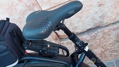 Bellissima e-city e-trekking a pedalata assistita Olympia Super-Magnum con motore Ananda M81 con 100nm e 630Wh. Cambio Shimano 9v, freni a disco idraulici Shimano. Gomme Swalbe 28x2.40 per avere il massimo confort e grip. Tubo sella ammortizzato.