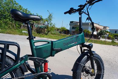 Telaio Materiale: Alluminio 6061 Pieghevole, leggero e resistente Motore Tipo: Brushless 250W Posizione: Posteriore Coppia: 80+ Nm (motore ad alta coppia) Velocità massima: 25 km/h Modalità di guida 5 livelli di assistenza PAS (Pedal Assist System) Batteria Litio 48V – 14Ah Capacità totale: 672Wh Rimovibile, ricaricabile Autonomia: fino a 120 km in modalità PAS Display Display LCD a colori YL-81Fcon USB Illuminazione LED anteriore LED posteriore con luce freno Catarifrangenti sulle ruote Forcella Modello: ED Titanio Con sospensione e sistema lockout Cambio SHIMANO 7 velocità Freni Freni a disco meccanici da 180 mm Anteriore e posteriore Sella Comfort in PU Larga, realizzata con tecnologia sottovuoto per maggiore comfort Ruote 20" x 4.0", Peso Circa 30 kg