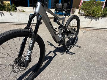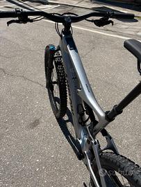 ebike AMFLOW modello PL CARBON DJI disponibile in pronta consegna disponibile taglia L (adatta a persone di altezza tra 173cm e 187cm. sistema AVINOX M1 sviluppato da DJI con potenza di picco di 1000w coppia max di erogazione 120 Nm telaio full carbon 2026 FOX 36 PERFORMANCE Escursione 160 mm, ammortizzatore GRIP 3 posizioni, 15×110 mm, offset 44 mm 2026 FOX Float PERFORMANCE Trunnion (185×55 mm), regolazione personalizzata, manicotto d'aria EVOL, Deragliatore posteriore: Deragliatore SRAM 70 Eagle trasmissione meccanica Corona: Corona E-MTB SRAM Eagle Transmission 104BCD 34T Cassetta: SRAM Eagle Transmission 10-52T Pedivelle: Pedivella Avinox SL (M/L: 155 mm; XL/XXL: 160 mm) Freno a disco idraulico Magura MT5, leva HC, pinza a 4 pistoni, rotore Storm HC da 203 mm (anteriore e posteriore) Cerchi: Alluminio, 29'', 30 mm di larghezza interna, 28 fori, Tubeless Ready segmento di utilizzo ALL MOUNTAIN batteria integrata da 800wh si tratta di un ebike nuova con prezzo richiesto di EUR 5499 (anziché EUR 6499 come da listino) bicicletta disponibile in pronta consegna in negozio. spedizione disponibile in tutta Italia bici venduta da concessionario AMFLOW ufficiale