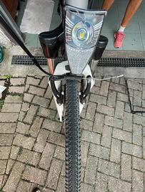 Cambio shimano acera 9v con monocorona 44t. Borsello dietro porta batteria che funge anche da porta oggetti , telefono , camera aria, barrette.