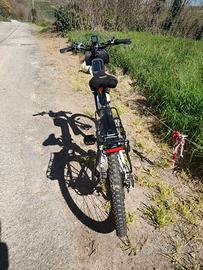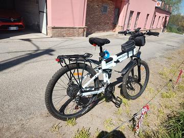 mountain bike elettrica Samebike LO26 è realizzata in lega di alluminio ed è in grado di resistere fino ad un peso di 150 kg. Dotata di cambio Shimano, luce LED anteriore per le pedalate notturne e tre modalità differenti: manuale, pedalata assistita e solo elettrica. A bordo troviamo un motore da 350W in grado di offrire una velocità massima di 35 Km/h, fino ad una pendenza di 35°. Dotata di ruote da 26″, l’e-bike integra una batteria da 10.4 Ah / 48 V, per un’autonomia fino a 40 Km in modalità elettrica e 80 Km in versione pedalata assistita. troverete due borse una porta telefono con possibilita di visione, una bagaliera fanale posteriore alimentatato dalla batteria, parafanghi e gomme antiforatura per un totale di 180€ ha percorso meno di 1300Km. Meccanicamente perfetta , batteria da sostituire, si trova su amazon con meno di 200€ opputre da aliexspres a 150€ oppure su su subito con 100€ rigenerata ,per problemi di salute la vendo per la spedizione se venite o mandate a prenderla vi posso fare 320€.