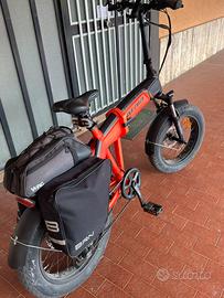 Per le specifiche tecniche è una ebike atala modello “ extrafolding” ha borse laterali,centrale ,frecce clacson,led luce aggiuntivo,portatelefono ,la bicicletta non ha bisogno di nessun lavoro non ha danni,prezzo 1000