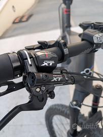 Telaio in alluminio idroformato con batteria integrata, forcella RockShox Judy Gold RL con escursione da 120 mm, cambio Shimano XT a 11 velocità con cassetta 11-46, freni Shimano XT BR-M8000 e gomme Schwalbe Nobby Nic 29″