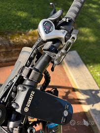 Vendesi e-bike Eskute Polluno anno 2022 in perfette condizioni sempre box, con: 1 batteria nuova sostituita 4 mesi fa; 2 freni a disco idraulici; 3 copertone ruota posteriore anti foratura; 4 sellino ammortizzato; 5 cavalletto telescopico. Caratteristiche tecniche principali: Motore e prestazioni •Motore: Bafang brushless nel mozzo posteriore •Potenza nominale: 250 W (limite legale UE) •Coppia: circa 32 Nm •Velocità massima: 25 km/h •Assistenza: 5 livelli di pedalata assistita  Batteria e autonomia •Capacità: 522 Wh (36V – ~14,5 Ah) •Tipo: celle Samsung rimovibile Autonomia: •fino a ~65–80 km con assistenza •circa 30–35 km usando molto il motore  •Tempo di ricarica: circa 7–8 ore Telaio e struttura •Telaio: alluminio 6061 •Tipo: step-through (scavalco basso, comodo) •Peso: circa 25–30 kg •Portata massima: 125 kg Trasmissione e componenti •Cambio: Shimano 7 velocità •Freni: a disco idraulici (rotori 160 mm) •Ruote: 28” •Pneumatici: circa 1.75”–2.1” Elettronica e funzioni •Display: LCD integrato •Funzioni: velocità, livello assistenza, autonomia, km •Sensore: di pedalata (cadence sensor)  Comfort e dotazioni •Posizione di guida eretta e comoda •luci integrate. Prezzo leggermente trattabile, (le borse non sono incluse nel prezzo). Zona roma nord.