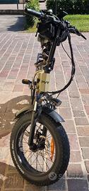 Vendo fatbike elettrica come da titolo, km percorsi circa 2500, la bici viene utilizzata giornalmente per tragitti casa/lavoro. Motore omologato per 250W, potenza massima fino a 1000W. Freni idraulici, freno anteriore potenziato con freno idraulico Shimano. Cambio Shimano. Mappe regolabili e settabili fino a 25kmh nel rispetto delle regole stradali, velocità raggiungibili fino a 42kmh. Poco più di un anno di vita. Batteria omologata per percorrenze fino a 120km. Insieme alla bici fornisco anche cavo di ricarica, manuale, porta telefono e sacca porta oggetti. Vendo per passaggio ad altro mezzo. Su richiesta vendo anche casco integrale a parte. Bici perfetta, normali segni di usura. Prezzo da nuovo 1300 euro. Solo scambio a mano zona Padova.