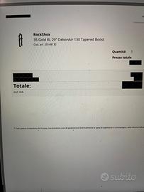 - Forcella Rockshox 35 Debonair 130mm a sostituzione della forcella a molla Suntour XCM 32 (valore euro 500)