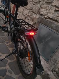 Vendo e-bike a pedalata assistita I-Bike City Easy ruote 27” - 25 km/h, sospensioni front, comprata nuova nel 2020 e usata pochissimo, motore 360W sulla ruota posteriore, batteria al litio 10000 mAh, freni classici a cavo e tacchetti (nuovi), pneumatico anteriore 80%, posteriore 40%, qualche leggero graffio da trasporto con carrello, luci anteriori e posteriori perfettamente funzionanti, clacson, portacellulare originale e molto robusto, sellino ribaltabile, portapacchi posteriore, parafanghi, caricabatteria come nuovo, ottimo stato batteria e componenti bici, ricoverata sempre al chiuso e perfettamente manutentata. Vendo per chiusura attività. No scambio. No spedizione.