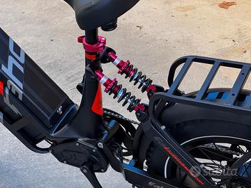 Posteriore: Doppia sospensione a molla con escursione di 35mm (più ammortizzazione extra sulla sella).