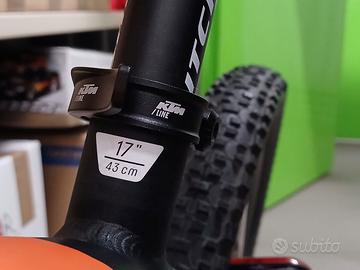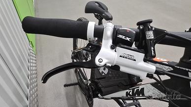 MTB elettrica KTM e-race P650 17”- 43cm - ruote 27,5” - solo Km 1194 - sella (Selle Italia) - pedali chiodati ad mapia superficie - rapporti 10x3 - cavalletto laterale - Batteria 412 Wh (con carica al 100% circa 65 km di autonomia - perfotmante) - doppio freno a disco. Pronta all’uso!