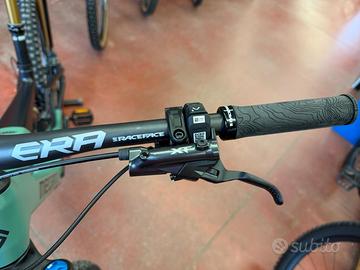 ebike marca MEGAMO modello REASON versione di equipaggiamento AL 03 anno/modello 2026 telaio ALLUMINIO sistema AVINOX M1 (DJI) batteria con capacità 800wh variante colore NERO/VERDE (opaco) telaio full alloy, sistema equipaggiamento AL 03 bici disponibile in pronta consegna nella seguente taglia telaio: taglia L (adatta a persone di altezza tra 180 e 202cm) anno 2026 sistema AVINOX M1 by DJI batteria 800wh sistema ebike MOTORE: AVINOX M1 (DJI), con coppia max di erogazione fino a 120Nm e con erogazione max di potenza fino a 1000w. BATTERIA: Integrata agli ioni di litio con capacità di 800wh DISPLAY: DJI AVINOX 2” OLED, touchscreen CONTROLLER: controller DJI AVINOX wireless FORCELLA AMMORTIZZATA: FOX 36 Factory Kashima 160mm Grip X AMMORTIZZATORE: FOX FLOAT X Factory Kashima TRASMISSIONE: SRAM EAGLE 90 a 12 velocità (10-52T), con cambio T-TYPE meccanico FRENI: SHIMANO XT a 4 pistoncini BR-M8220 REGGISELLA: Telescopico FOX TRANSFER FACTORY KASHIMA SELLA FIZIK RIDON X5, RUOTE: DT SWISS H 1900 carbon PESO bici: 21,65 kgs bici nuova, venduta da concessionario MEGAMO ufficiale spedizione disponibile in tutta ITALIA EUR 6999