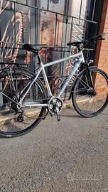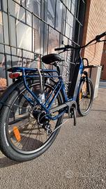 Il telaio in alluminio L400 è abbinato a una forcella ammortizzata da 26″ T80, progettata per garantire comfort e controllo su percorsi urbani e misti. L’attacco manubrio fisso in alluminio assicura una struttura solida e ben bilanciata.