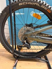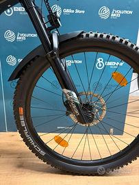 Bici DEMO-TEST Con 469 km Anno Modello: 2024 Telaio: 29/27.5", ultra lite AL-6061 tubing, PowerTube battery, 140 mm rear travel Colore telaio: Verde Forcella: Bergamont E-Trailster 150 Expert Ammortizzatore: Rock Shox Deluxe Select Plus RT Air, length x stroke 205x65, hardware: body bearing mount eyelet Ruote: Alex EXR30, disc, eyelets, 29" / Alex EXR30, disc, eyelets, 27.5" Cambio: Shimano Deore, RD-M6100, Shadow Plus Corone: 34 t Pedivelle: e*thirteen e*spec Plus crank / e*spec Base chainring, 34t, 165 mm Freni: Shimano BR-MT420, hydraulic disc brake, 4-piston Motore: Bosch Performance Line CX, Gen. 4, BES3, 250 W, 36 V, max. 25 km/h, 85 Nm ( KMTOT PERCORSI: 469 KM ) Batteria: Bosch PowerTube, 36 V Li Ion, 625 Wh ( KMTOT PERCORSI: 469 KM )