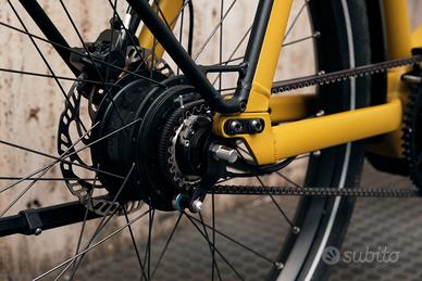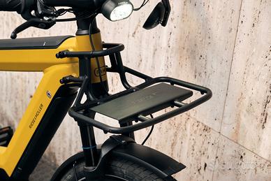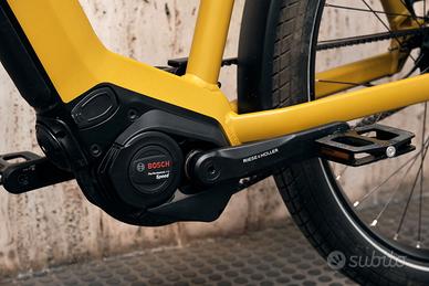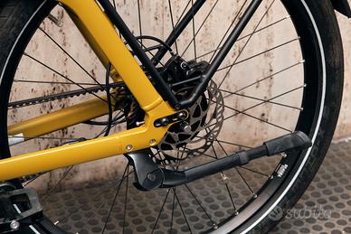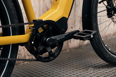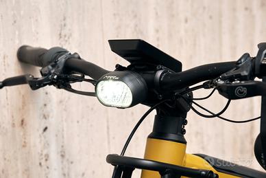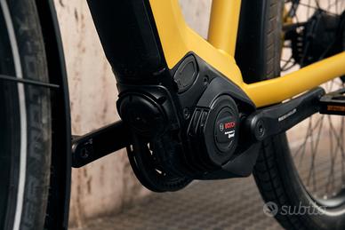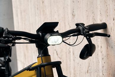 Bici elettrica usata con pochi km in conto vendita presso il nostro negozio. Sempre tagliandata dalla nostra officina, versione HS con assistenza fino a 45 km/h. Doppia batteria 1.000 Wh. Trasmissione a cinghia con zero manutenzione! Telaio misura 49, per statura 170-185 cm. La Supercharger è la regina del turismo, anche a lungo raggio, da pedalare con piacere infinito tutti i giorni. Il brillante motore Performance Line Speed da 85 Nm ha tutta la potenza che serve per superare qualunque dislivello, mentre le distanze non sono un problema, grazie alla capiente doppia batteria integrata da 1.000 Wh: la Supercharger ti porterà ovunque tu voglia! Questa versione HS ha il limitatore a 45 km/h ed è venduta con i documenti necessari all'immatricolazione come veicolo di classe L1e Grazie al cockpit integrato con display Nyon a colori di grandi dimensioni si ha sempre tutto sotto controllo e, scaricando la app gratuita, si può utilizzare anche la funzione di navigatore. La dinamica è sempre piacevole e sicura su qualsiasi terreno, in virtù delle ruote da 27,5" - ottimo compromesso tra maneggevolezza e comfort - con gomme Schwalbe Super Moto-X a larga sezione. Inoltre forcella e reggisella ammortizzati assicurano un elevato comfort di guida, in ogni situazione, che sia il pavé cittadino o una strada bianca. Sempre in tema di sicurezza: gli spazi d’arresto sono ridotti in virtù dei potenti e modulabili freni a disco Magura. Con la trasmissione Enviolo 380 e la cinghia che riduce a zero la manutenzione si possono sfruttare in maniera efficiente le performance del motore. Il potente sistema di illuminazione Supernova consente di guidare al buio senza problema: il fascio di luce LED con funzione abbagliante è ampio e profondo, non solo per farsi vedere, ma per rischiarare a giorno la strada davanti alle nostre ruote. Di serie: robusto portapacchi posteriore con sistema MIK e portapacchi anteriore optional, per una capacità di carico extra.