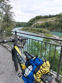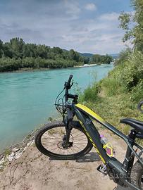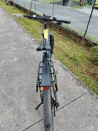Mtb taglia M/L accessoriata da viaggio, usata prevalentemente su ciclabili km 3270 ottimo motore Bosch performance line 85mn, cambio Sram 12 rapporti, sella SMP(optional) forcella Rock Shok Judy, freni Shimano, cavalletto laterale Scott,(optional) batteria asportabili da 500, pedali sgancio rapido, portapacchi in alluminio(optional) borsa da manubrio nuova(optional) 1 borsa laterale per portapacchi nuova(optional). Tutto,freno anteriore da spurgare olio.prezzo optional compresi 1750€.