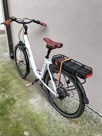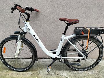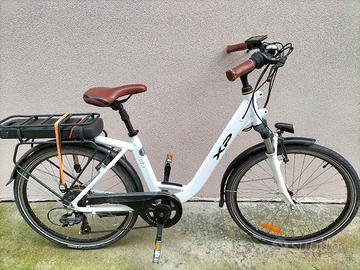 Vendo per inutilizzo bicicletta e-bike XP colore bianco UNISEX in perfette condizioni pari al nuovo ( ha ancora le plastiche sulle pedivelle)con display per variare modalità pedalata assistita,completa di carica batteria,sette velocità.Percorsi meno di 300 km. Forcella e sella amortizzate,ruote da 26" .