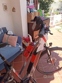 Vendo Eco Bike rossa della Atala Mod.Clever 7.6,del Dicembre 2024,ancora in garanzia con: computer di bordo digitale,batteria ricaricabile amo ibile,forcella ammortizzata,sella ammortizzata,specchietto laterale,campanello,borraccia,luci che si accendono in automatico con il buio,chiusura con lucchettone porta pacchi,borse laterali ed altro.