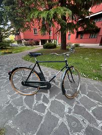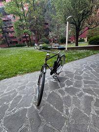 Vendo bellissima bicicletta da passeggio da uomo marca Sanremo, un vero gioiello del design vintage italiano. La bici è stata conservata in modo maniacale ed è in condizioni estetiche e meccaniche impeccabili, pronta per essere pedalata senza dover spendere un euro in manutenzione. Caratteristiche principali: Modello: Classico con freni a bacchetta (sistema pulito ed elegante). Stato: Vernice nera lucida originale, cromature brillanti e assenza di ruggine. Componenti: Sella comfort nera, carter integrale copricatena, parafanghi in acciaio e portapacchi posteriore. Dettagli di stile: Pneumatici con spalla color para (miele) che conferiscono un look retrò raffinato. Accessori inclusi: Campanello d’epoca, dinamo e faro anteriore a "uovo" perfettamente funzionante. 🎁 SUPER OMAGGIO INCLUSO: Per chi acquista al prezzo indicato, includo nel pacchetto una pompa a colonna professionale B'Twin 900 (valore nuovo circa 30€) con manometro di precisione, ideale per mantenere sempre la perfetta pressione degli pneumatici. Perché sceglierla? Non è la solita bici vecchia da cantina: è un pezzo di storia italiana conservato con cura, ideale per chi cerca un mezzo affidabile, elegante e distintivo per la città o per collezionismo