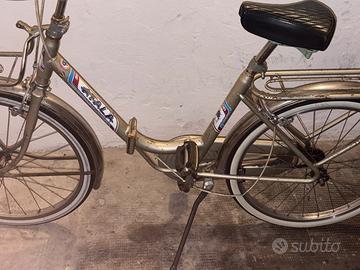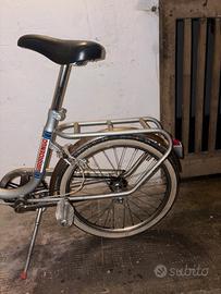 Questa bicicletta da città, con il suo stile classico e intramontabile, è il simbolo dell’eleganza vintage. Con il suo telaio in metallo robusto e il design semplice, è l’ideale per chi cerca un mezzo di trasporto pratico e senza fronzoli. Le ruote di dimensioni moderate e il portapacchi posteriore la rendono perfetta per fare commissioni in città o per un giro rilassante nel weekend. Nonostante il suo aspetto datato, questa bici ha un fascino senza tempo, capace di farti sentire come se stessi pedalando nel cuore degli anni ’70.
