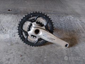 Elementi per assemblaggio Specialized : due ruote con freni a disco, telaio, manubrio con fili cavetti di freni e cambio, pedivella, catena e sospensioni telescopiche.