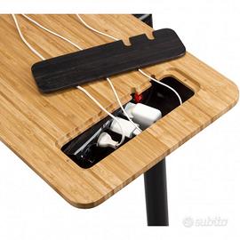 Ampio piano d'appoggio con vano interno per alloggiare i cavi di alimentazione.
