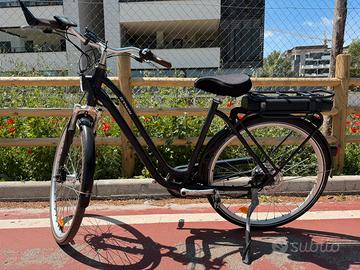 Bicicletta elettrica a pedalata assistita Elops 900 BTwin. Perfettamente legale, Appena revisionata, completa di due batterie, freni a disco, ammortizzatori anteriori, sella imbottita, cambio Shimano, display digitale, tre potenze disponibili, specchietto retrovisore. Vendo per poco utilizzo. Solo consegna a mano, vista e piaciuta. Costo da nuova circa 1.200 euro