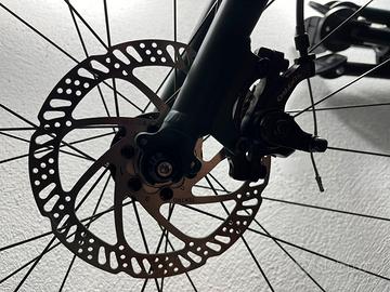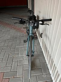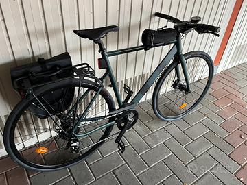 Vendo per cambio modello la mia Elops Speed 900, una bicicletta pensata per chi vuole muoversi velocemente nel traffico urbano con uno stile sportivo e minimalista. È una bici molto reattiva, leggera e dotata di componentistica di qualità superiore rispetto ai modelli base. Specifiche tecniche e punti di forza: • Cambio: Shimano Altus 8 velocità (cambiate rapide e precise). • Freni: Freni a disco meccanici (frenata sicura anche in caso di pioggia). • Pneumatici: Dotata di gomme con protezione antiforatura. • Equipaggiamento di serie: Inclusi i suoi iconici fari integrati (anteriore e posteriore) ricaricabili via USB • Agilità: Geometria del telaio studiata per essere scattante tra le auto. Stato del mezzo: La bici è stata trattata con cura e sempre revisionata. • Meccanica: Cambio fluido e freni ben regolati. • Telaio: Perfetto • Manutenzione: Catena pulita e lubrificata regolarmente Comprendo nel prezzo anche porta pacchi borsa laterale per portapacchi e borsello da telaio. Sono stati cambiati copertoni, manopole e pedali compresi anche gli originali.