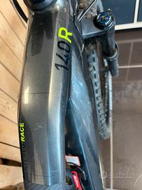 E bike in carbonio Stereo Hybrid 140 Hpc Race 625, pedalata assistita elettrica motore Bosch performance cx, batteria da 625 Wh, trasmissione Shimano a 12 velocità e forcella RockShox 35 con escursione di 140 mm per uso Trail/All Mountain.
