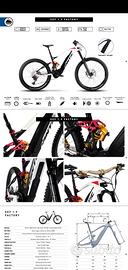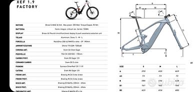 Mountain bike a pedalata assistita segmento SuperEnduro - marca FANTIC modello XEF 1.9 Factory (top di gamma) con mono ammortizzatore Ohlins TTX, freni Braking con tubi in treccia, forcella Rockshox Zeb Ultimate 190mm di escursione diametro 38mm con regolazione alle alte e basse velocità, motore Brose 90 Nm con batteria da 720Wh. Taglia L con ruote mullett (27.5 posteriore - 29 anteriore). Pellicolata e tagliandata (catena/pacco pignoni/pneumatico anteriore appena sostituiti). Chilometri totali: 2500 circa. Prezzo di listino: 9000 EUR