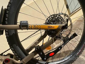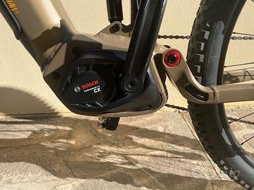 Telaio: Alluminio 6061 full suspended. Batteria completamente integrata con serratura AXA. Sensore di velocità BOSCH integrato. Escursione di 150 mm 205x60 Trunnion Standard. Perno ruota posteriore Quicklock 12mm x 178mm. Diametro tubo sella 30,9 mm. Manicotto sterzo conico. Attacco per 1 portaborraccia.