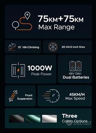Bici elettrica ENGWE M20 da 750 W, 75 km + 75 km, velocità massima 25 km/h, doppia sospensione, e-bike a lunga autonomia.