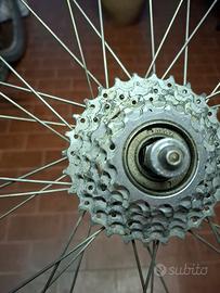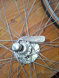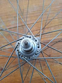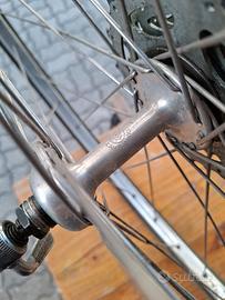 Coppia di ruote.con tubolare,ruota post.con mozzo e serraggio campagnolo il cerchio no, ruota ant.campagnolo solo serraggio, resto altre Marche. Usate per eroica, raggiatura ok,i tubolari sempre in pressione usabili ancora per parecchi KM .Preferisco ritiro diretto