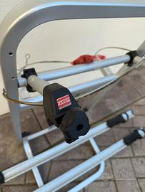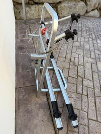 Portabici posteriore Gringo in alluminio per fuoristrada. Ideale per MTbici ma con ricambi per canaline per bici da corsa. Montaggio posteriore su ruota di scorta fuoristrada. Fissaggio rapido senza ausilio di attrezzi grazie al sistema di chiusura a leva rapida. Prezzo di listino: 420€ + 104€ per le canaline aggiuntive Vendesi causa cambio auto. Consegna di persona in zona Varese o in altri casi spedizione a carico dell’acquirente.