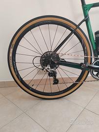 Bici gravel Factor LS taglia M montata SRAM Rival meccanico, copertoncini panaracer gravelking, pedali crankbrothers. Vendo insieme al rullo Wahoo kicr in foto. Non riesco a spedire.