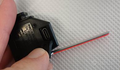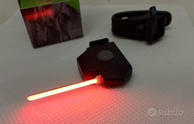 Vendo fanale a LED ricaricabile usb-C ad alta luminosità colore rosso con 4 effetti di luce (fisso, lampeggiante, pulsante, a scorrimento).