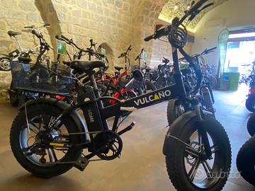 Fat bike vulcano Extreme: forcella ammortizzata, luce posteriore a LED, indicatori direzionali , cerchi in lega 5 razze, 5 livelli di assistenza, freni idraulici Tektro, motore BAFANG 500 W 48 V.
