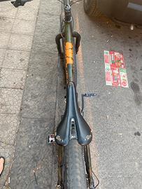 Bici in alluminio, manubrio in magnesio, sellino in carbonio, freni a disco.