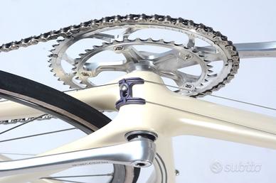 Telaio monoscocca interamente in carbonio, componenti shimano dura ace, cerchi mavic, reggi manubrio 3T stratus 12 cm, sella San Marco regal, misure 57 c-c x 57,5 c-c in perfette condizioni.