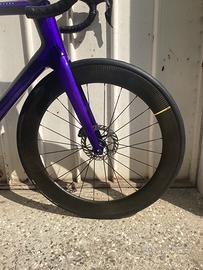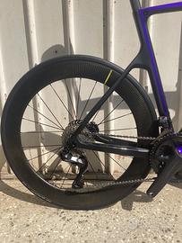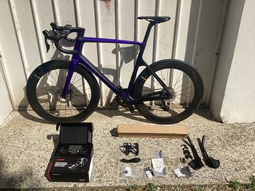 Vendo FCR Van Rysel Ultegra Di2 2023 tg. XL colorazione viola full carbon. La bici di 3 anni scarsi e 15000km. La bici monta: - trasmissione Shimano Ultegra R8100 completa, - ruote Mavic Cosmic SL65 (compatibili con Tubeless), - manubrio Deda Vinci 400x120, - sella Selle San Marco. I seguenti componenti sono nuovi, appena montati e MAI USATI su strada: 1)pastiglie freni Shimano L05A 2)catena Shimano Ultegra M8100 3)pacco pignoni Ultegra 11-34 4)copertoni Continental Ultra Sport 700x25 5)dischi freni Shimano RT-CL700 6)nastro manubrio Van Rysel. Insieme alla bici vengono venduti i pedali Assioma Favero PowerMeter Duo x misurazione della potenza con sensori su entrambi i pedali (pedali acquistati nuovi 02/2025)->450€. Fornito supporto per ciclocomputer compatibile con Garmin, Bryton, Wahoo integrato con il manubrio->27€. Forniti 10 raggi sostitutivi. Incluse prolunghe Deda Parabolica Uno con possibilità di attacco integrato con manubrio->120€. Portaborracce VR full Carbon->50€. La bici si trova in condizioni ECCELLENTI e non necessita di alcun lavoro, totalmente revisionata e pronta all’uso. Bici veloce e reattiva perfetta per il triathlon, viste le prolunghe in dotazione, e ciclismo.