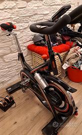 La spin bike Fassi R 26 Club viene venduta per inutilizzo. E' una spin bike di alta gamma con pedali di qualità e diverse regolazioni su sellino e manubrio. La sella ergonomica, ideale anche per chi effettua lunghe sessioni di allenamento, può essere regolata in verticale e in orizzontale, in modo da trovare la giusta posizione per ogni altezza. Il tipo di scatto è quello fisso, indispensabile per chi si allena a un ritmo di pedalata molto alto, e vuole talvolta alzarsi in piedi durante l’attività fisica. Fassi R 26 Club vanta un freno di emergenza a pattino. I livelli di resistenza della bici si regolano tramite la manopola rossa sul telaio. La regolazione è quindi quella più classica, meccanica: tramite un tampone si ostacola lo scorrere del volano, costringendo l’atleta ad esercitare più o meno forza a seconda del livello scelto. E' dotata di sensori per il rilevamento delle pulsazioni cardiache sul piccolo computer di bordo ed possibile vedere anche il tempo, la velocità, la distanza e le calorie bruciate.