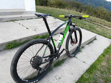 MTB in carbonio made in Italy costruita da Favaloro .Monta Shimano XT completo doppia forcella ammortizzata e rigida.Bici molto leggera e reattiva con diversi accessori tipo doppio manubrio e doppie ruote.tg,L