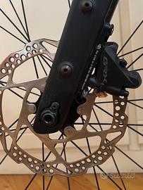 Focus Atlas 6.8 taglia M Gravel . Vendo per errata taglia sono alto 1,84 e per me è piccola. Telaio in alluminio , forcella in carbonio, cerchi Novatec con perni boost ,freni a disco idraulici , cambio GRX 800 2x11, ruote da 45 tubless , vari punti di attacco per telai borse . Altre caratteristiche tecniche potete trovarle direttamente sul sito FOCUS . Lieve graffiatura da muro su una leva che non compromette in alcun modo l’utilizzo. Prezzo già ribassato e non trattabile Ritiro a mano o a spese dell’acquirente Catena Shimano nuova Specifiche: Telaio Aluminium, disc, BSA, 148x12 mm thru axle, flat mount 160/160 mm, internal cable routing, Toptube Bag Standard BB: BSA, 68mm, Filettato Forcella Carbon, disc, 110x12 mm thru axle, flat mount 160/160 mm, internal brake cable routing, multiple mounting points Bottom Bracket BSA Auricolare ACROS IS 52/286-IS52/40 (ICR), FOCUS integrated C.I.S. Stem Aluminium, 31,8 mm, 6° Manubrio FOCUS JD RA85, 31,8 mm, drop: 116 mm, reach: 74 mm, flare: 10° Sella WTB SL8 Reggisella Aluminium, 27.2 mm, 0 mm set-back Tipo: Rigido Gruppo Deragliatore posteriore Shimano GRX RD-RX810, 11-speed Deragliatore anteriore Shimano GRX FD-RX810 Manovella Shimano GRX FC-RX600 *, 11-speed / Easton EA90 *, 11-speed Leve del cambio Shimano GRX ST-RX600, 11-speed Cassetta Shimano 105 R7000, 11-speed Catena Shimano CN-HG601, 11-speed Freni Disc Tipo: Disco idraulici Leve freno Shimano GRX BL-RX600, 11-speed Ruote Cerchi Novatec 25 Elite, 25-622, disc, center lock, front: 110x12 mm, rear: 148x12 mm Pneumatici WTB Riddler, 700 x 45C, folding