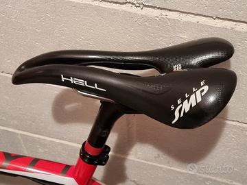 - cambio 105, corone 52/36, pignoni 11/28, con ruote di serie con copertone posteriore Vittoriano Zafiro Pro (per rulli), sella SMP HELL, Manubrio Fizik Cyrano R3, doppio porta borracce Elite Custom Race