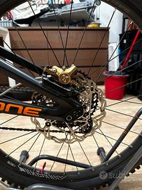 Forcella Fox 38 29" Float Factory Kashima, mono Fox FACTORY DHX2, freni BRAKING Coppia freni a disco IN.CA.S. 2.0 tubo in treccia 5.7mm pompante 9.0mm, pedali Crank Brothers.