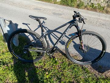Come da titolo vendo mtb front Focus Raven 29R, telaio in carbonio super leggero, ruote da 29 pollici, taglia S. In dettaglio il montaggio: cerchi in carbonio Dt Swiss XR 1501, freni Shimano SLX nuovi con dischi Magura, cambio Shimano XTR 10x2 (guaine nuove) con guarnitura Shimano Deore XT, manubrio e attacco manubrio Crank Brother, sella San Marco con binari in carbonio, forcella Rockshox Sid Ultimate da 100mm con cartuccia Brain. Bicicletta usata davvero poco, in condizioni pari al nuovo, vero affare.
