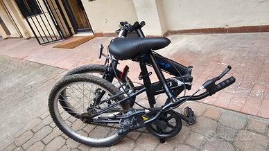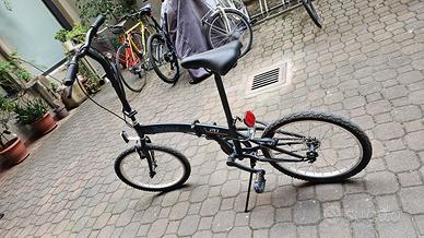 Bicicletta si trova in zona Baranzate Milano non faccio spedizioni faccio consegne zona Milano io. Meccanismo di piegatura: Al centro del telaio è presente un robusto meccanismo di bloccaggio. Questo permette di piegare la bicicletta a metà per facilitarne il trasporto nel bagagliaio dell'auto o per riporla comodamente in appartamento. Geometria: Il telaio presenta una geometria bassa di tipo "da donna", ideale per chi deve effettuare soste frequenti e garantisce una salita in sella agevole con qualsiasi tipo di abbigliamento. 2. Ruote e Percorribilità Dimensioni: Le ruote da 20 pollici assicurano ottima manovrabilità e compattezza, sebbene assorbano meno le irregolarità del terreno rispetto alle ruote standard (26–28 pollici). Pneumatici: È equipaggiata con pneumatici universali (probabilmente Kenda), adatti sia all'asfalto che allo sterrato compatto. 3. Trasmissione e Freni Tipo: Si tratta di una bicicletta monomarcia (single-speed). L'assenza di deragliatori semplifica notevolmente la manutenzione, ma rende più faticose le salite ripide. Sistema frenante: Monta freni a pattino di tipo V-brake sia all'anteriore che al posteriore. Sono facili da regolare, ma la loro efficacia può ridursi in presenza di pioggia o fango sul cerchio. 4. Ergonomia Regolazioni: Il reggisella molto lungo e l'attacco manubrio alto permettono di adattare la bici a persone di quasi ogni statura. Sella: Ampia e morbida, progettata per passeggiate rilassate all'insegna del comfort. Manubrio: Di tipo "olandese" (alto), garantisce una posizione di guida eretta e rilassata, eliminando il carico eccessivo sulla schiena e sulle braccia.